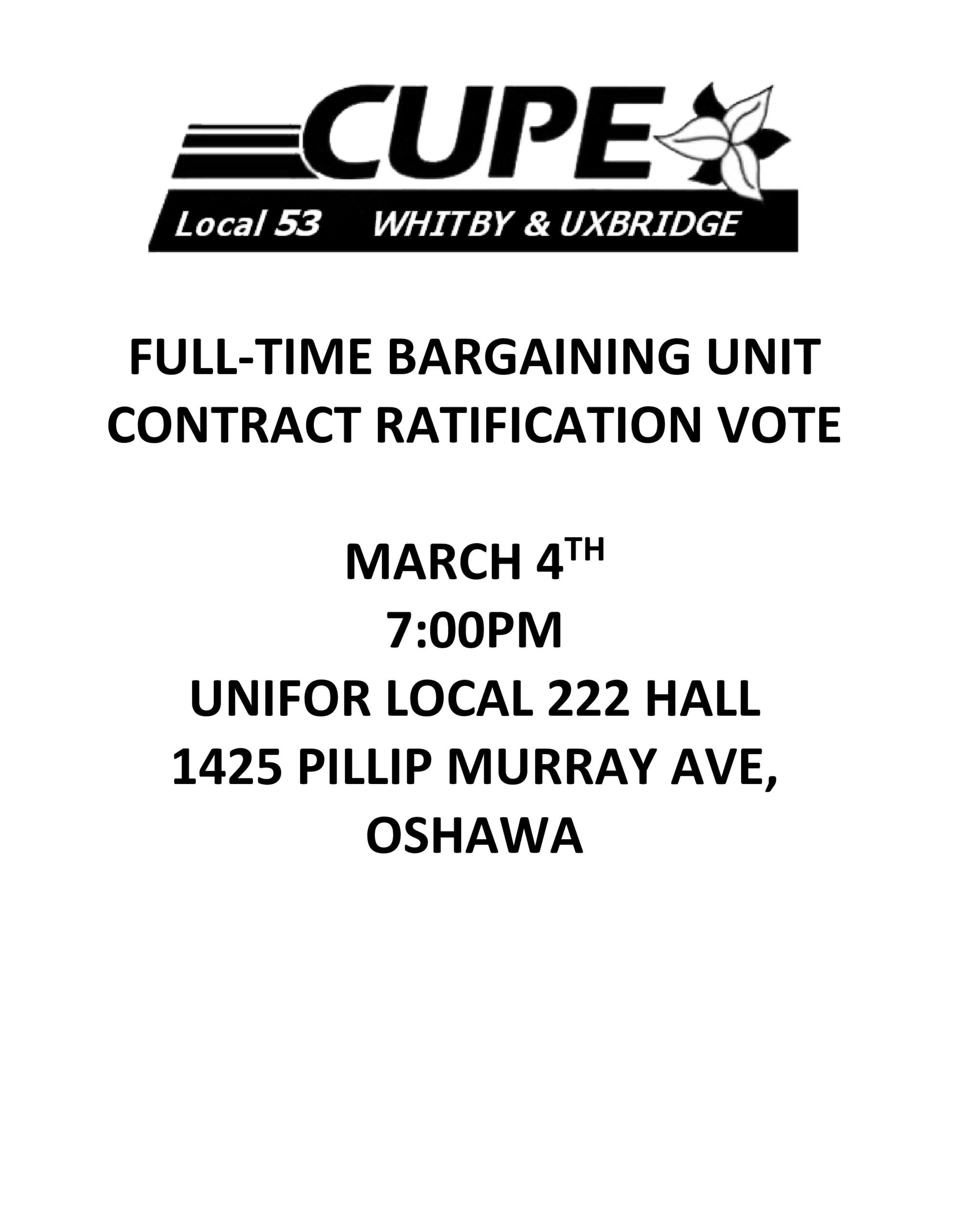 The Ratification vote will be March 4th, 2026 at 7:00PM at the Unifor Local 222 Hall (1425 Phillip Murray Ave, Oshawa)!