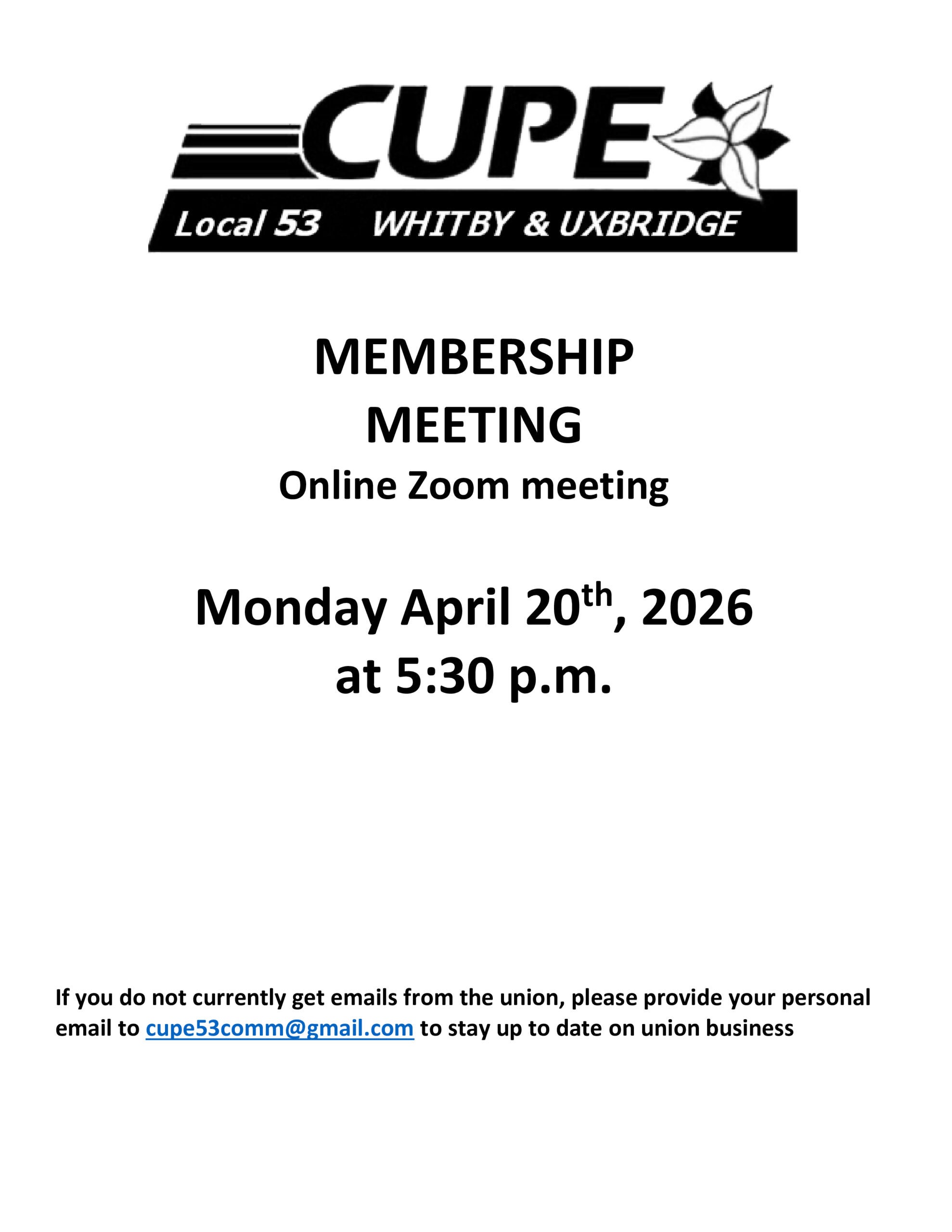Please email cupe53comm@gmail.com for the Agenda & Correspondence List.